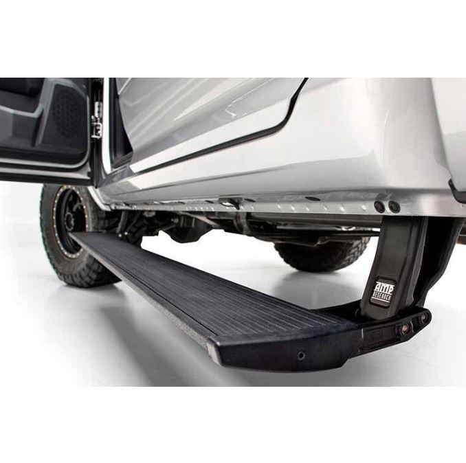 AMP Research utilizes only the finest materials, including die-cast aluminum and stainless steel for exceptional durability and corrosion resistance. The step's surface is treated with a military-grade PTFE coating, guarding the underlying alloy against oxidation and abrasions; the black finish also provides a sleek, discreet appearance.