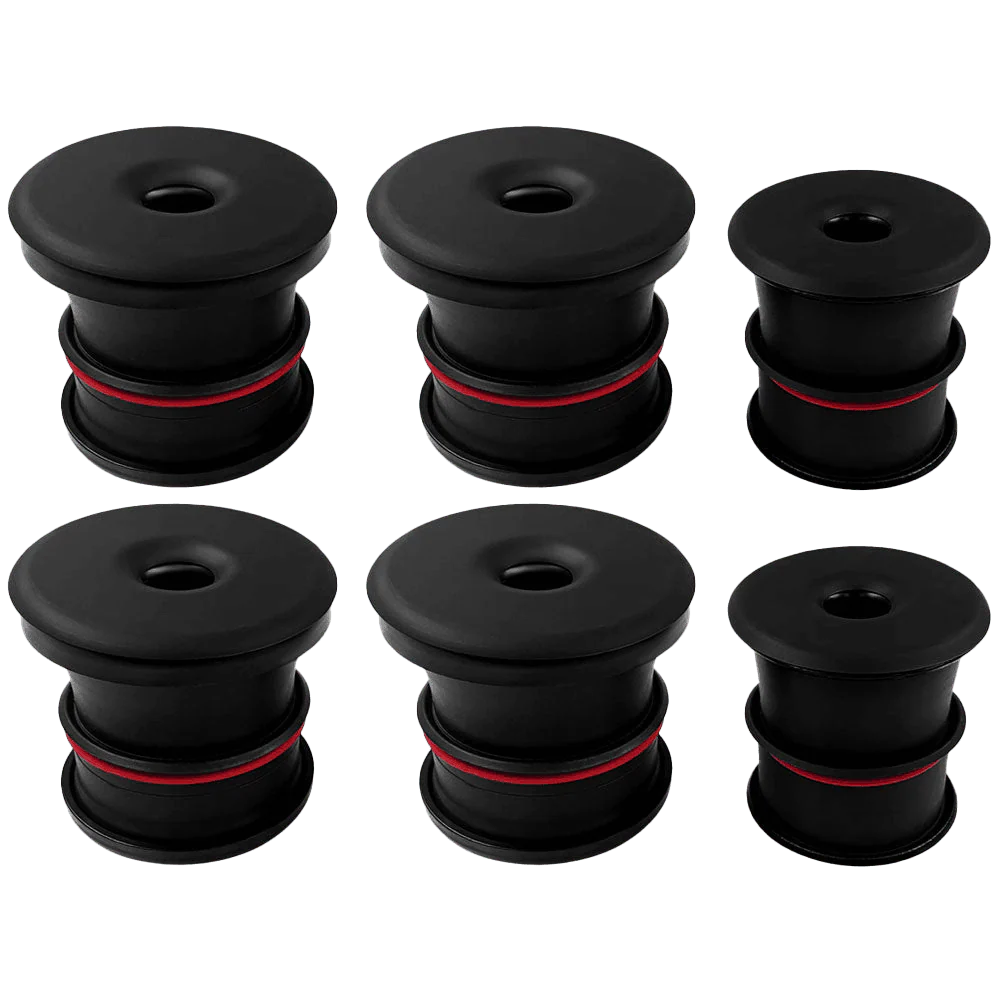 These bushings offer excellent vibration isolation and will not crack or break down like OEM foam or rubber bushings. They also come with coated steel cups and bolts for superior corrosion resistance.